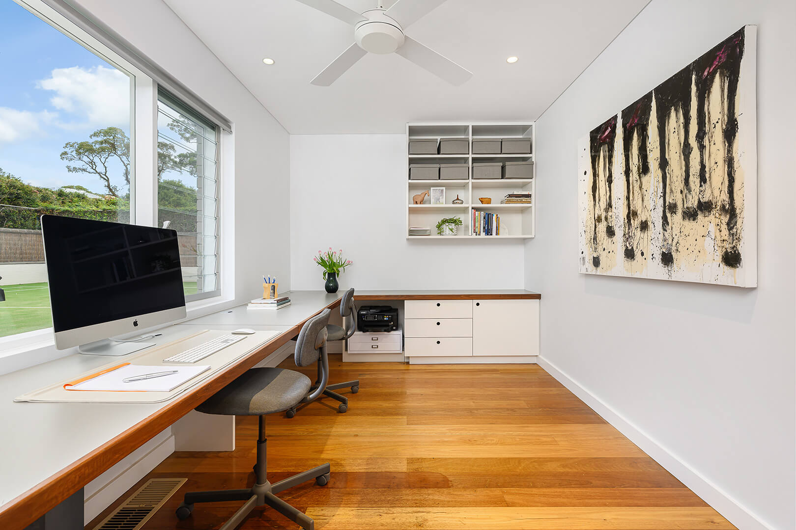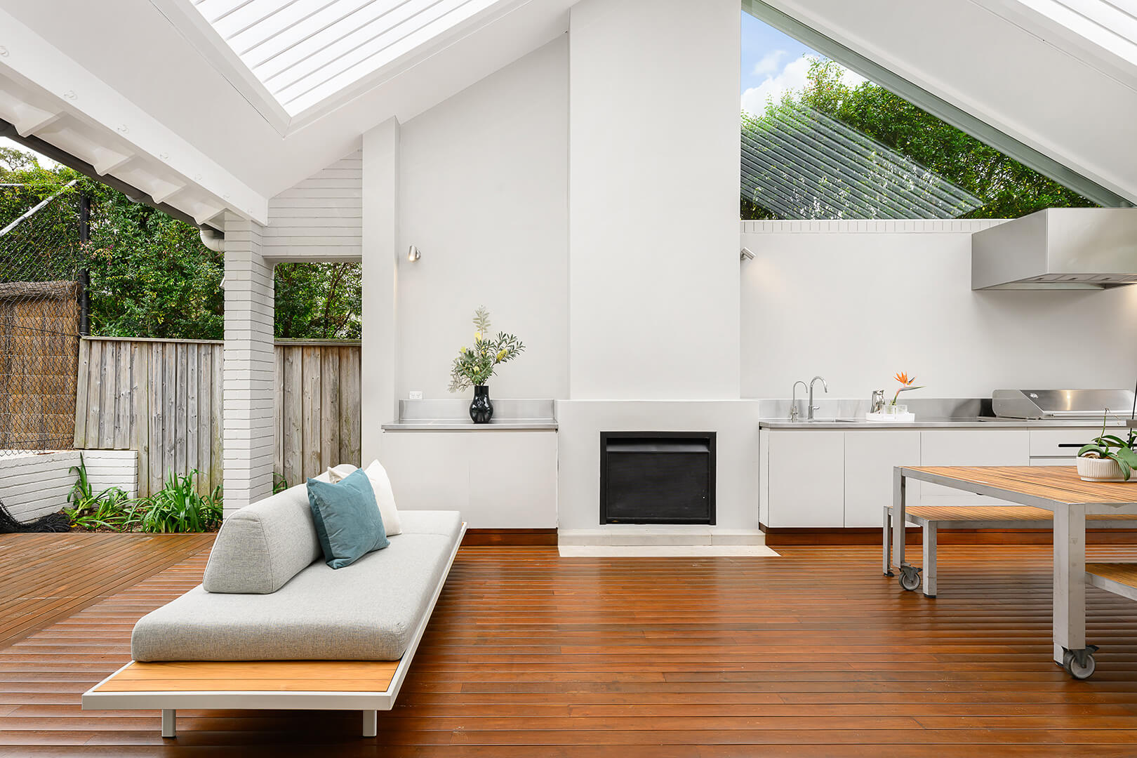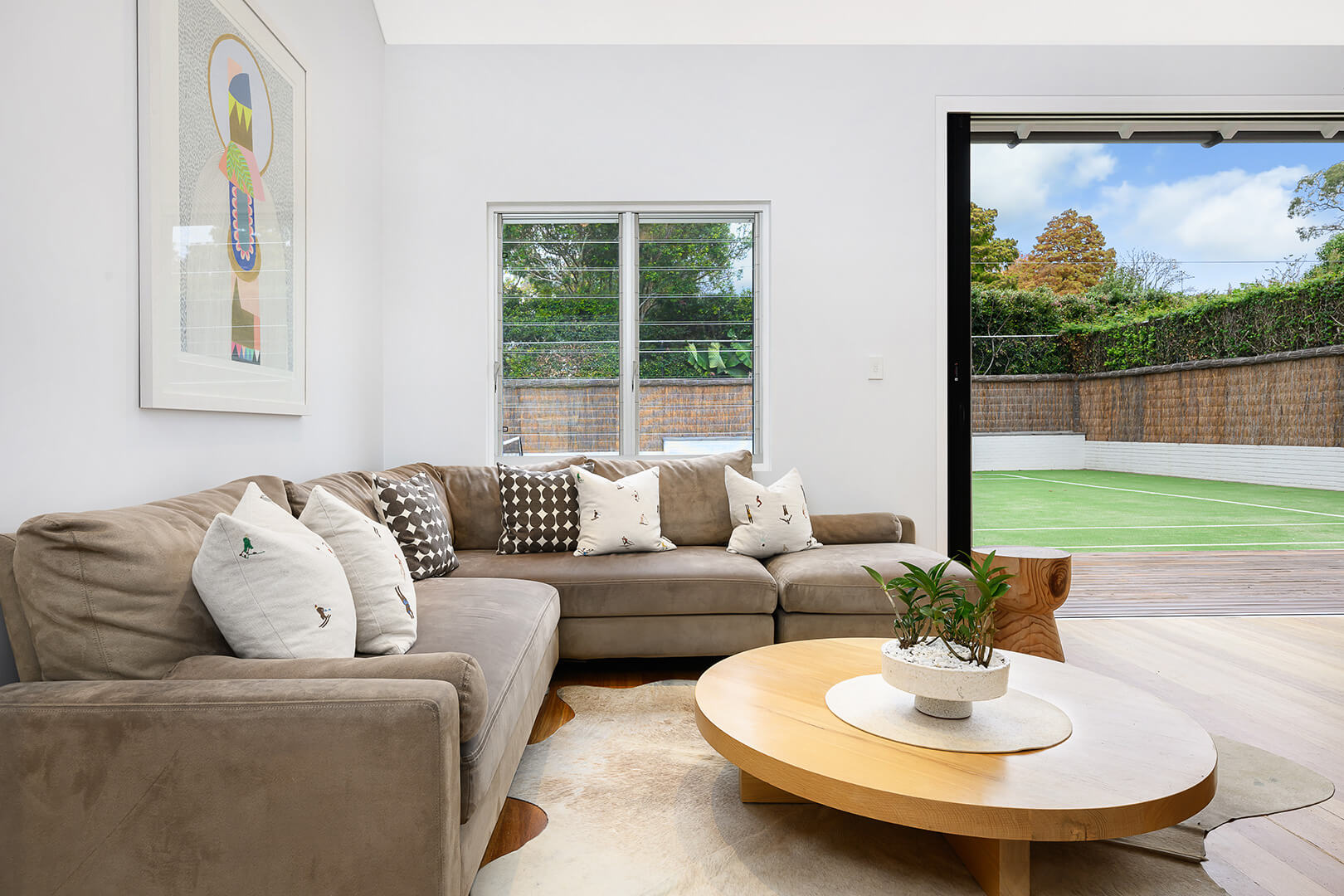 This project transformed a dated family home with an existing tennis court and pool into a generous entertainer’s paradise. Retaining the best parts of the property, this design reimagined how the home could connect to the outdoor areas and garden. The garage was relocated below the garden level, allowing a generous outdoor living area to take centre-stage. Sheltered under the original gable roof these areas connect to the garden, pool and tennis court and provide thermal comfort throughout the year.
